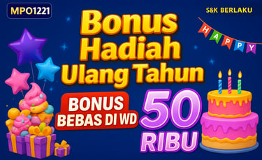Login ke MPO1221, klaim Bonus Ulang Tahun 50K, langsung bisa dipakai main & ditarik tanpa syarat berat! 💸